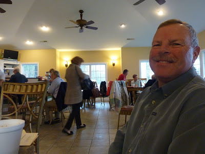 We served Birthday cake and coffee at our condo for friends (only one candle on Paul's cake as we did not want to start a fire with the other 60!) |